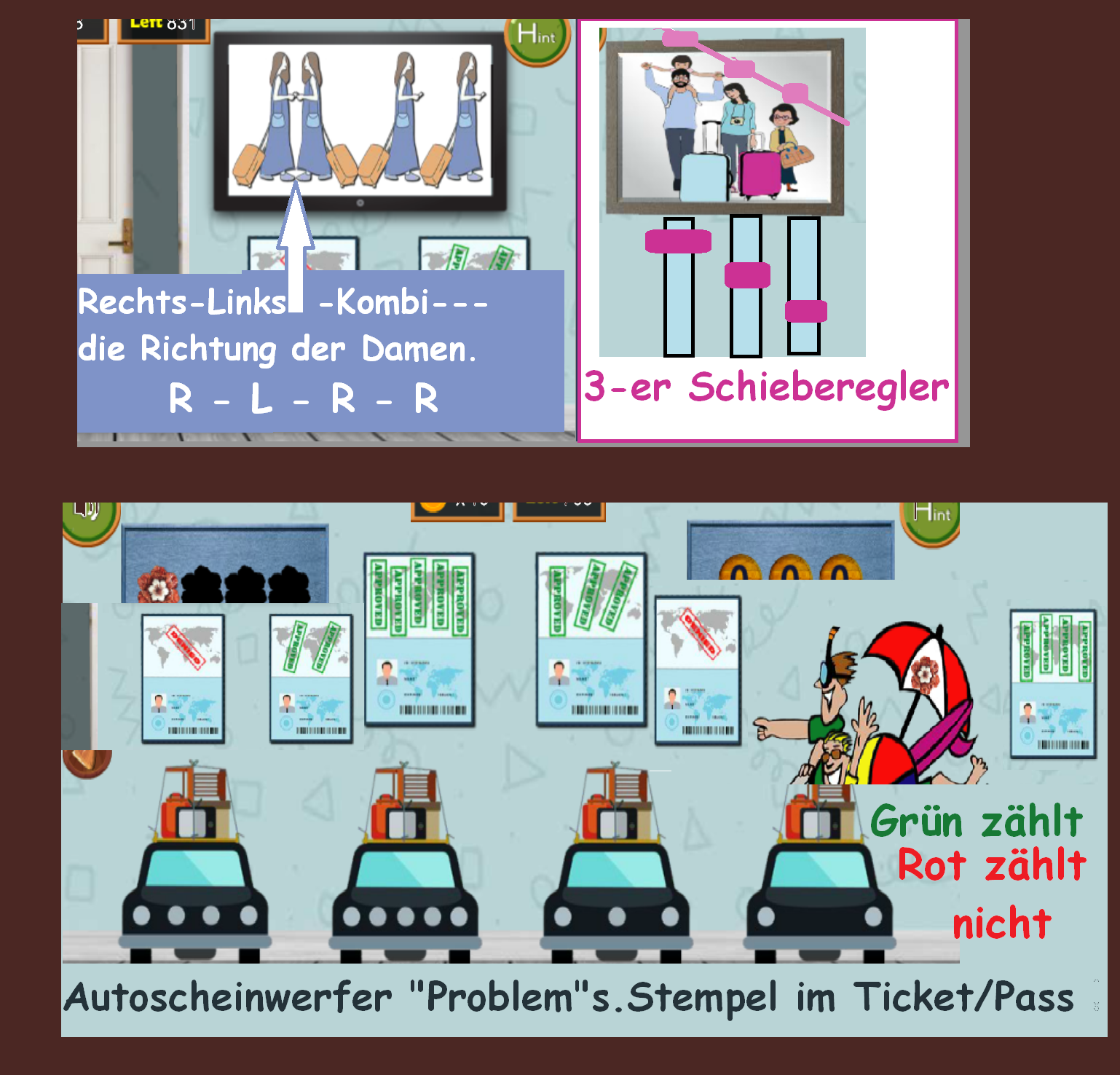 Es gibt keinen Hinweis für die 3 Schieber und auch mit den Autos mit 2,3,4 oder 5 Scheinwerfern kann ich nix