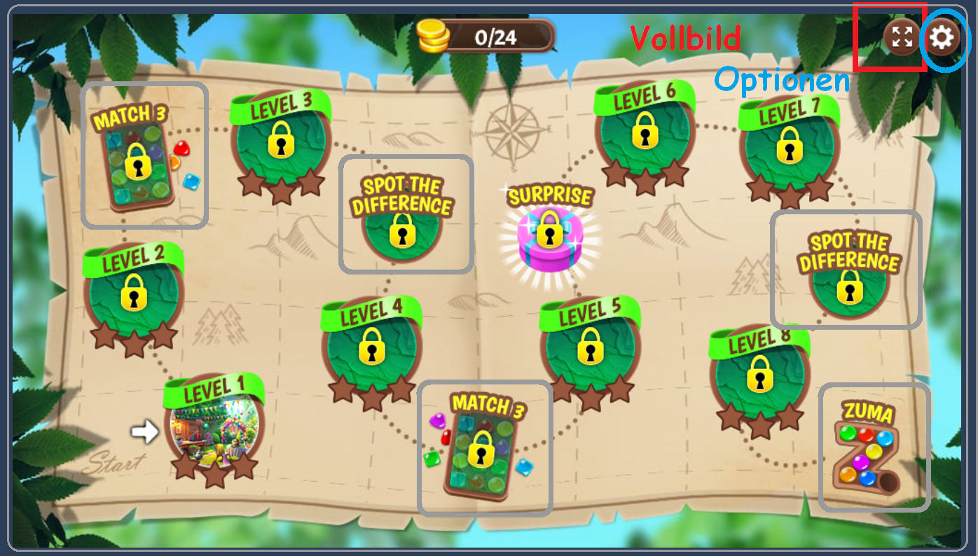 Es gab eine bunte Abwechslung zwischen dem "üblichen Suchen und Finden - Wimmler" und "Find the Difference" , Farbenketten bilden und "Zuma" -Schlange am Schluss. Plus einem "Surprise"
